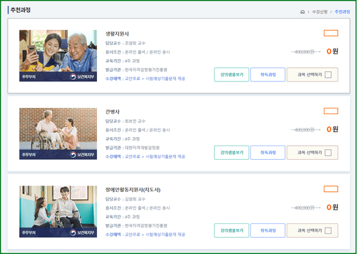 - 간병사: 노인 및 환자의 일상 지원 및 건강 관리 교육 과정.