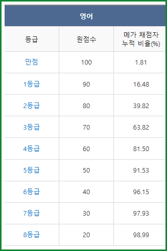 - 영어 1등급: 90점 2등급: 80점 3등급: 70점